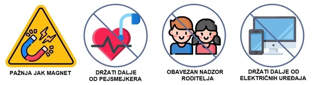 Jeste, ali budite oprezni! Magneti ove jačine mogu prignječiti prste ako se ne rukuju pažljivo. Takođe, držite ih dalje od dece.